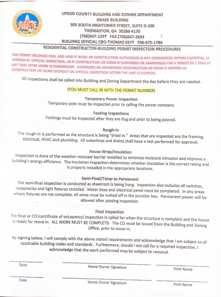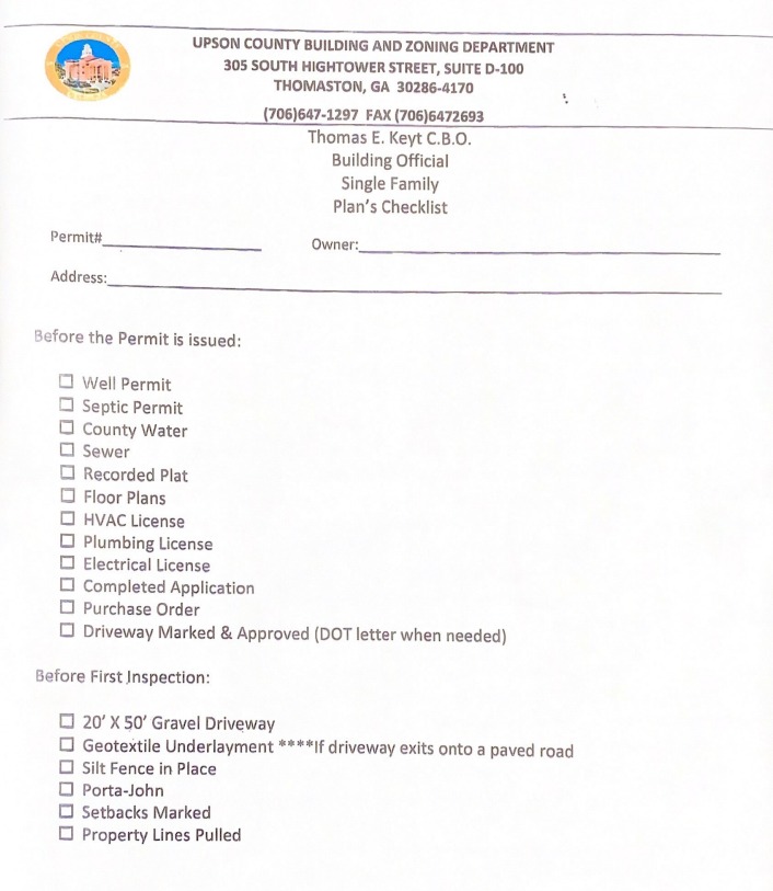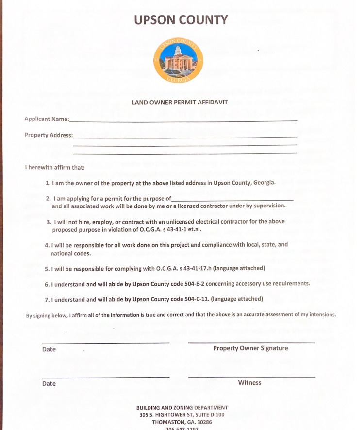 ALL PERMIT APPLICATIONS SHOULD BE EMAILED TO: GARAGON@UPSONCOUNTYGA.ORG