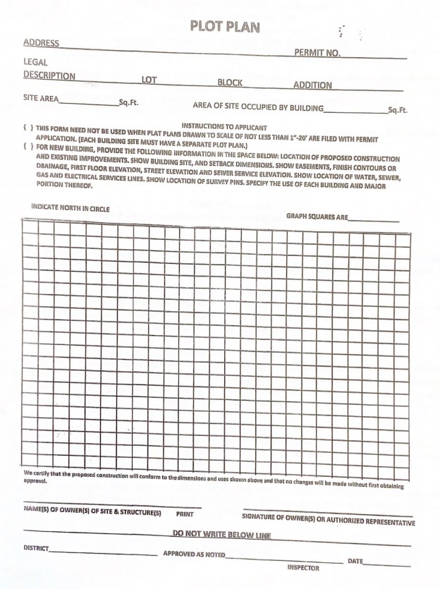 All construction plans must be submitted in person or mailed to the Building and Zoning office. Plans must be hard copies, 36X24 or larger. CONSTRUCTION PLANS WILL NOT BE ACCEPTED BY EMAIL.